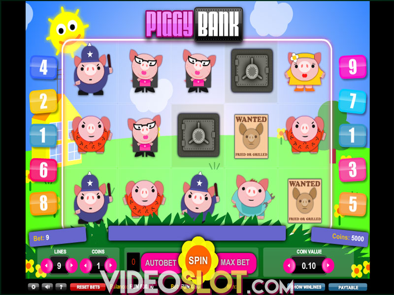 Piggy Bank is a 1x2 Gaming title from 2015 which makes sure that players have a lot of fun while at the same time scooping up some handsome prizes. Though the gameplay is fairly simple, you can take advantage from Wild Substitutions and a Free Spins Round played with a theoretical Return to Player set at a solid 95.69%. A cartoon-like design, some basic animations and a relaxing soundtrack will take you to an idyllic countryside where mischievous piglets await you to help them rob the bank.