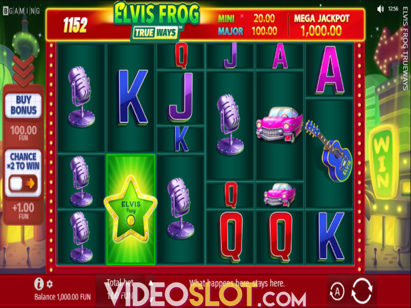 Premiums include a Microphone, Guitar, Cadillac and a female Fan which issue between 1x and 5x your wager when 6 form a win. Playing card Royals represent low-win symbols delivering 0.50x the stake each for 6 in sequence. Elvis Frog stands for Wild that completes wins by substituting other symbols, excluding Scatter. A Green Star depicts Scatter, awarding from 2x to 20x the bet and is in charge of triggering Free Spins.