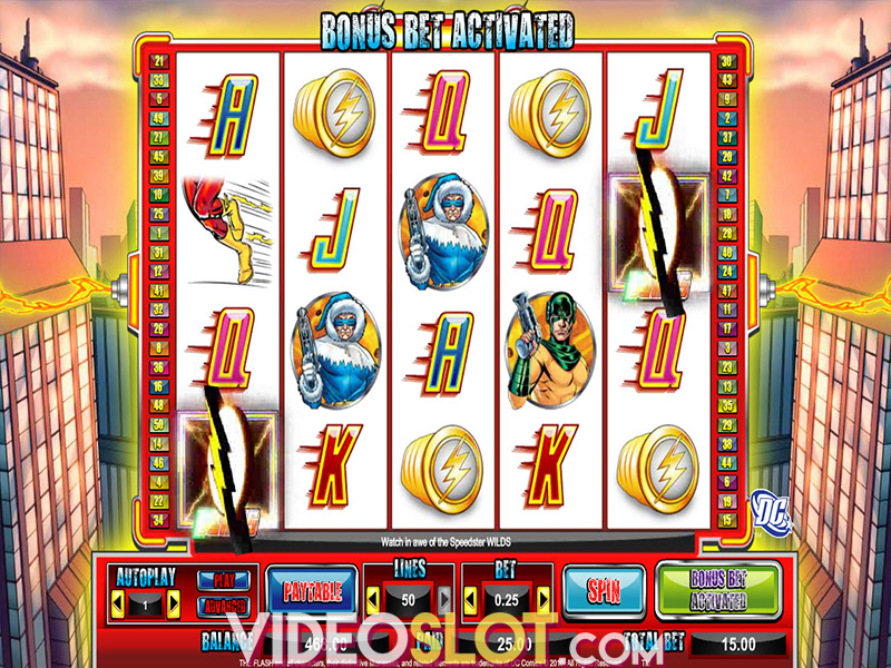 As the free spins are playing off Superman may make an appearance on the screen and when he does so any winning combinations that he helps to form can be boosted by up to five times the pay table listed payouts for those winning combinations!
