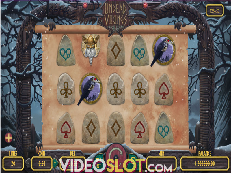This 5-reel, 3-row video slot has 20 fixed winlines on which one can wager from $0.20 to $2,000.00. Such a betting span will be suitable for both beginners and seasoned punters. The coin value can be adjusted to size spanning between $0.01 and $100.00. Hit the Spin button for the reels to start whirling. Undead Vikings pays left to right when at least 3 matching symbols appear on adjacent payline positions. Turn Autoplay on for an automatic gameplay.