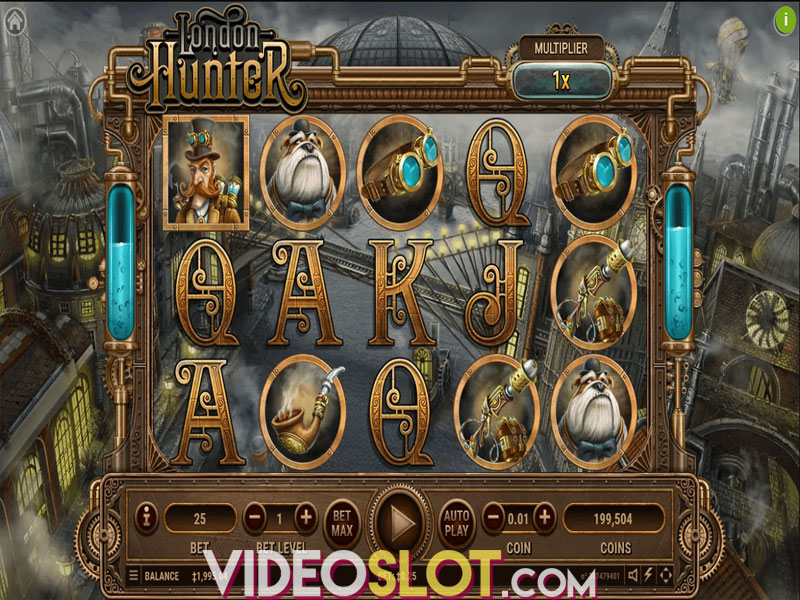 London Hunter is a 5-reel, 3-row game with 25 fixed paylines. Players can set their wagers between $0.25 up to $5,000 per spin. Pressing the spin button makes the reels move, revealing new icons in the place of old ones, and potentially leading to a lucrative winning combination. Alternatively, gamblers can use the Autoplay button to keep spinning the reels until the button is pressed again, or you run out of money, whichever option comes first.