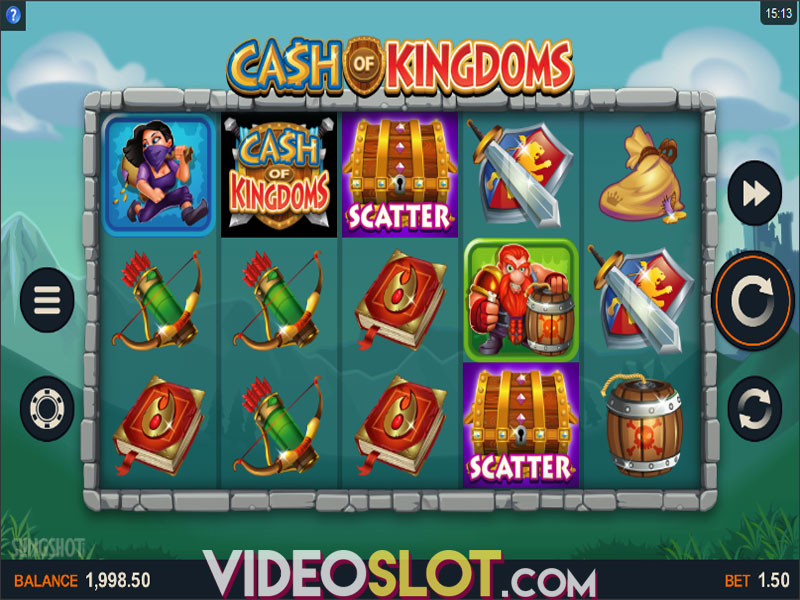 Cash of Kingdoms is a 5-reel, 3-row slot with 15 fixed paylines available to place bets ranging from $0.15 to $480.00. Click on the chip on the left of the reels to customize the bet by selecting the number of coins placed per line, which varies from 1 to 32. Adjust the coin denomination that goes as low as $0.01 and up to $1.00.You can start the game either by pressing Spin or by enabling Autoplay, so that the game continues automatically up to 100 times. If you want the reels to spin faster, you can always activate the QuickSpin feature. The slot pays both ways, but symbols must appear on adjacent reels on a payline, except for Scatter which will pay no matter where it lands. All wins will be multiplied by line bet.
