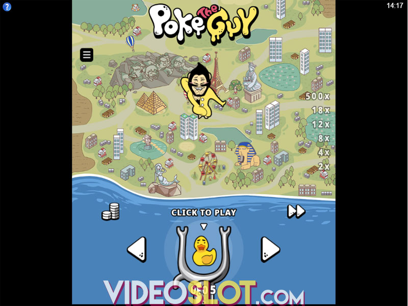 The Guy is the only symbol you will find in this game and he will jump between popular tourist attractions on the map, while you poke him with a wide selection of weapons. Some of these landmarks include the Eiffel Tower, the London Eye, Mount Rushmore, Egyptian Pyramids, and the Sphinx.