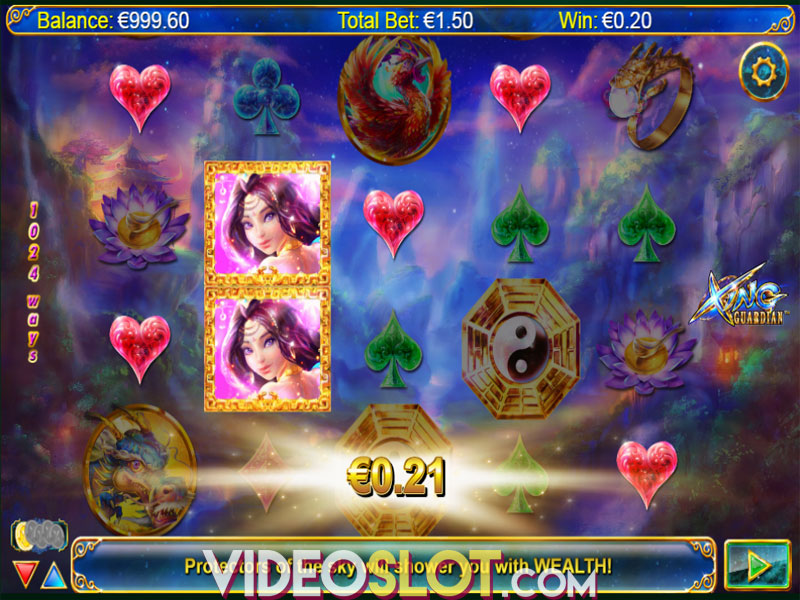 The slot is a home to two special symbols, the Xing Guardian standing for Wild and the Yin Yang representing Scatter. The Xing Guardian is the top paying symbols and it appears in stacks on the reels 2, 3, 4 and 5 to substitute regular symbols and complete your winning combinations. During the base game Wild can trigger the Xing Guardian Locked Reels feature making the adjacent reels lock and spin together featuring the same symbols. Land 3 Scatters anywhere on the reels and you will trigger the Free Spins feature. During 10 free games, 2, 3, 4 or 5 reels can lock and spin together containing the same symbols which can result in multiple winning combinations. The feature can be retriggered awarding extra 5 free games.
