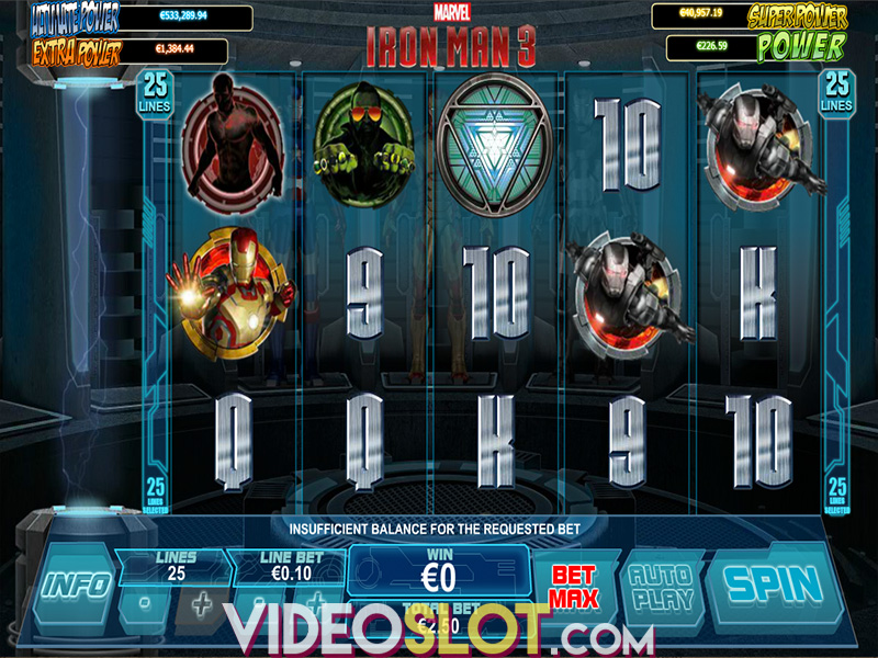 Iron Man 3 is one of the top played Marvel Comic slots from Playtech and this game features 25 paylines and the chance to win random progressive jackpots. The game is based on the popular comic book Iron Man and there are some amazing features that have been added. The game can be played for various bet amounts that range from $0.25 to $250 per spin, though no maximum bet is required to win any of the progressives.