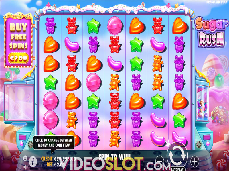 When talking about visuals, the 2022 release will remind you of Candy Crush, or a similar game. The reels are set on a peculiar machine that produces all sorts of candy. Furthermore, the entire background is made of sweets as well. Lollypops, Hearts, Stars, and different kinds of Gummy Bears appear as regular icons. There are no Wilds on offer. The Rocket is the Scatter that triggers free spins.