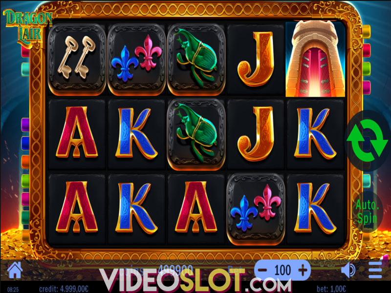 Top-paying symbols include a Horse and a Golden Dragon egg issuing 4,000 and 5,000 coins when 5 hit. Fleur-de-lis, Keys, Scarab and an Eagle represent medium-value icons that deliver from 2,000 to 3,500 coins for 5 of a kind. You’ll receive 1,000 coins if 5 matching Playing card Royals land on consecutive positions. The Princess embracing a Dragon represents Wild which replaces symbols, but Scatter, when completing wins. It is an Expanding symbol that land sonly on reels 2, 3 and 4. As for Scatter, it is depicted with a Tower and 3 are needed to enter the Bonus.